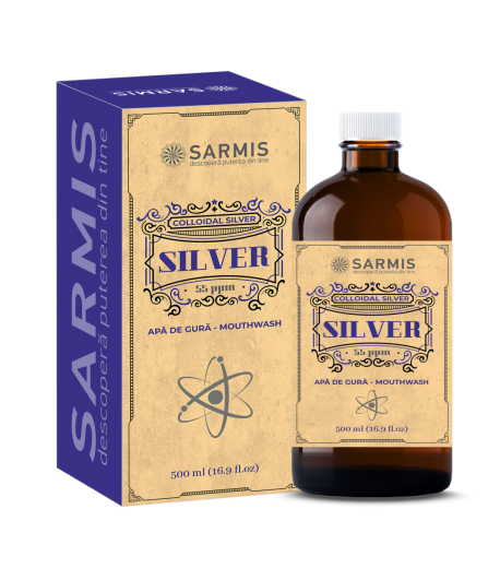 Argint Coloidal Sarmis 55 ppm este o soluție naturală obținută din argint metalic coloidal de puritate 99,99%, dispersat în apă purificată. Acest produs este apreciat pentru proprietățile sale antibacteriene, antivirale și antimicrobiene, fiind utilizat tradițional pentru susținerea sistemului imunitar și pentru protecția organismului împotriva microorganismelor patogene.