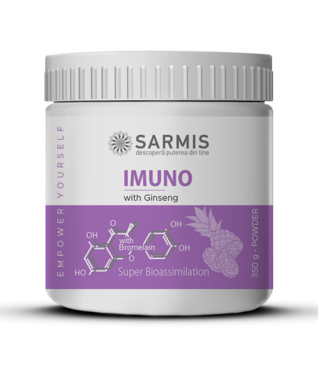 Imuno cu Bromelaină este un supliment alimentar sub formă de pulbere, formulat pentru susținerea sistemului imunitar, reducerea inflamațiilor și îmbunătățirea digestiei. Conține un amestec de ingrediente naturale, inclusiv Astragalus, Cordyceps, Turmeric, Ginseng Siberian și Bromelaină, recunoscute pentru efectele lor antioxidante, antiinflamatoare și imunomodulatoare.