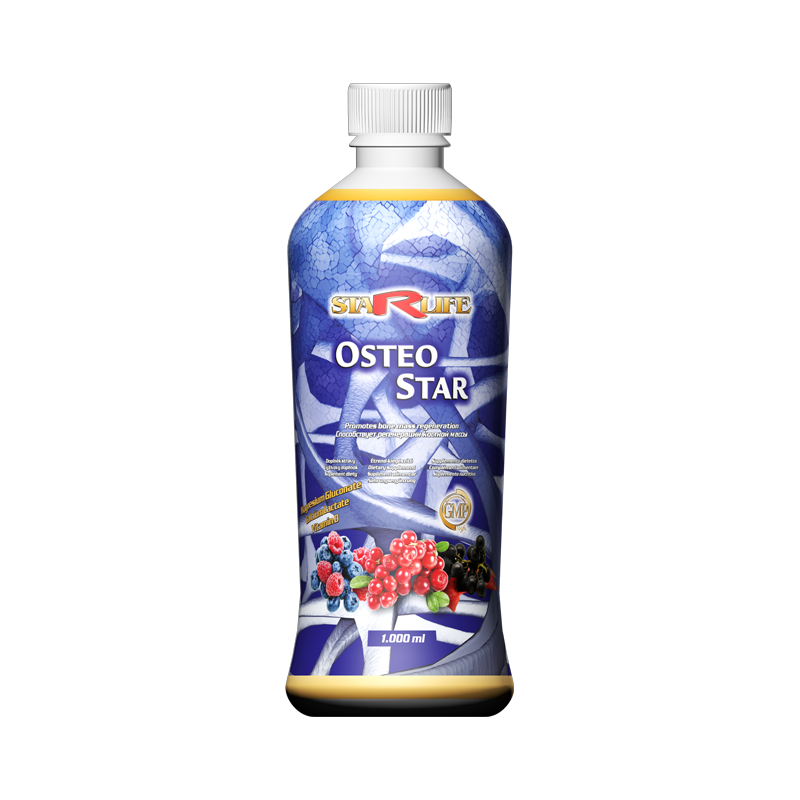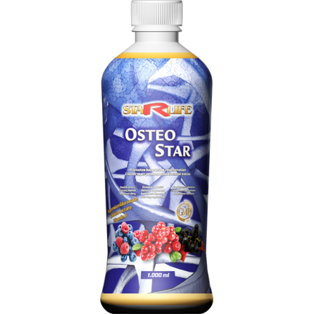 OSTEO STAR asigură cantitea zilnic necesară de calciu, magneziu, vitamină C şi D a organismului într-o formă coloidală, ionizată. Componentele produsului au un efect de construcţie scheletală şi participă şi în reacţiile enzimatice. Destind crampele musculare, ajută vindecarea leziunilor şi sudarea oaselor fracturate. Scade efectele negative ale stressului. OSTEO STAR asigură cantitatea necesară de substanţe nutritive pentru generarea de către organism a celulelor osoase noi.